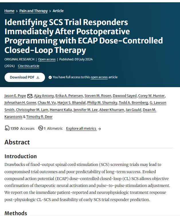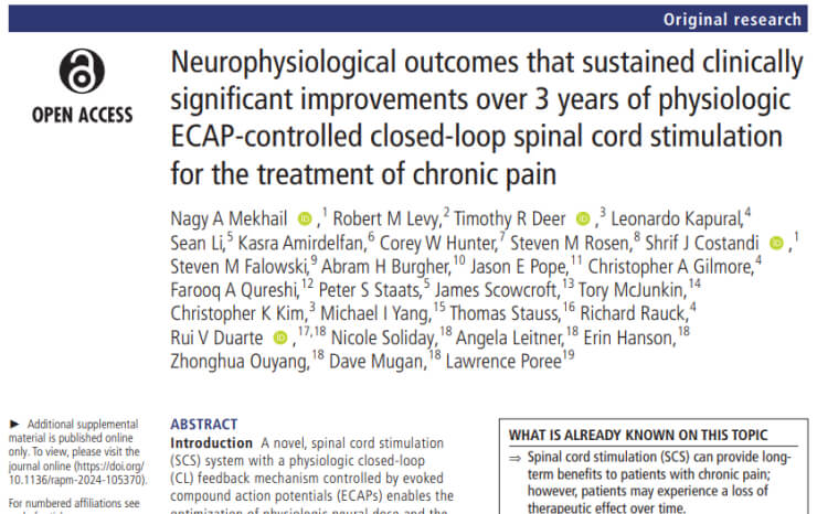 Robert M. Levy et al. Maximal Analgesic Effect Attained by the Use of Objective Neurophysiological Measurements With Closed-Loop Spinal Cord Stimulation