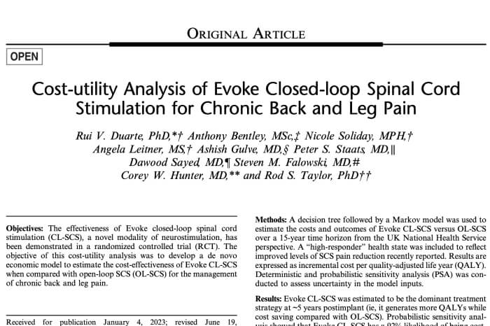 The Evoke System Real-World Evidence Parallels The EVOKE RCT And AVALON Study Clinical Outcomes