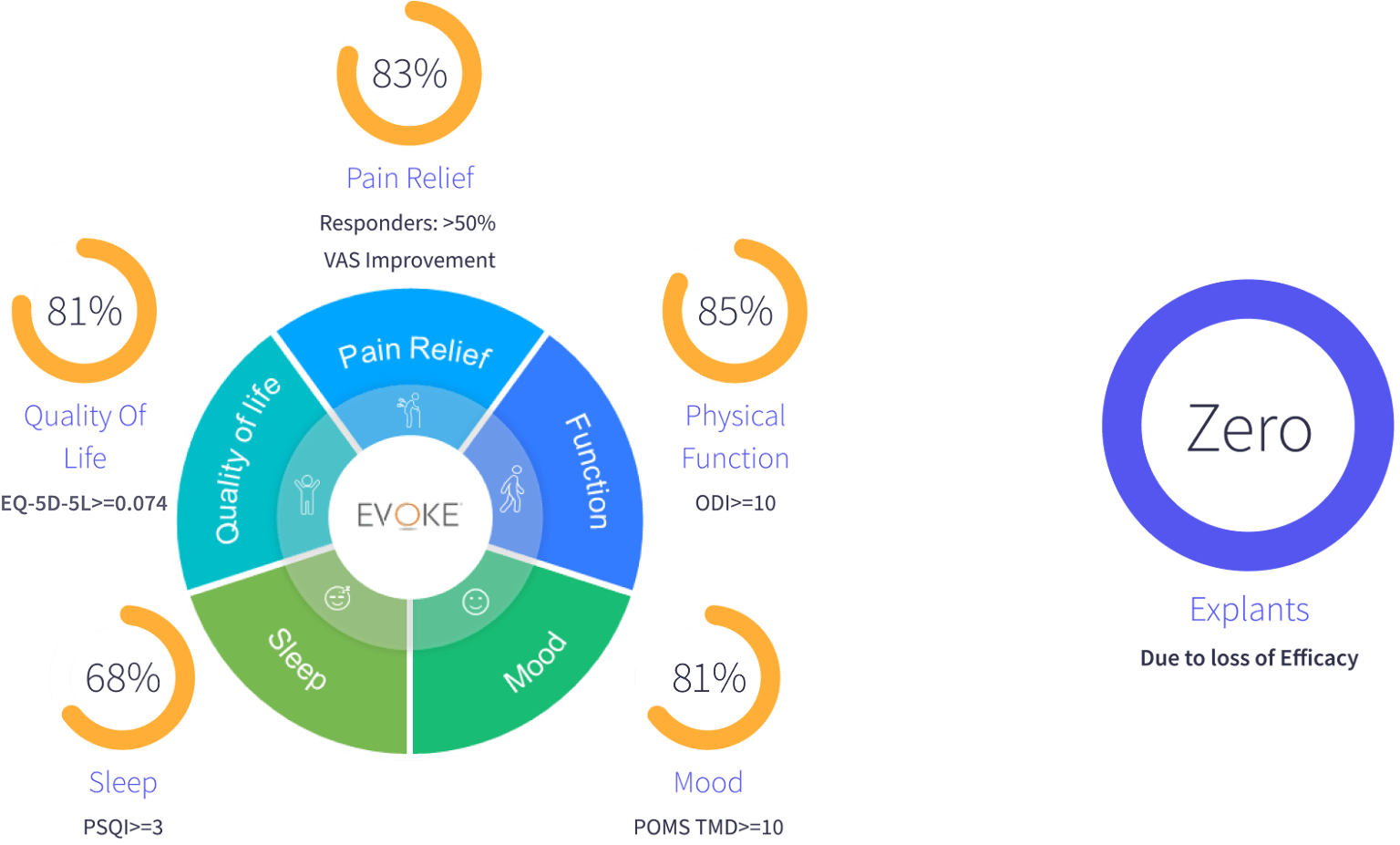 Improvement in multimodal outcome domains beyond pain as shown in the EVOKE Study1