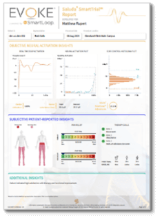 - Reports available for the clinician that use data collected from in-clinic programming and at-home therapy delivery. This data can be displayed longitudinally over time.